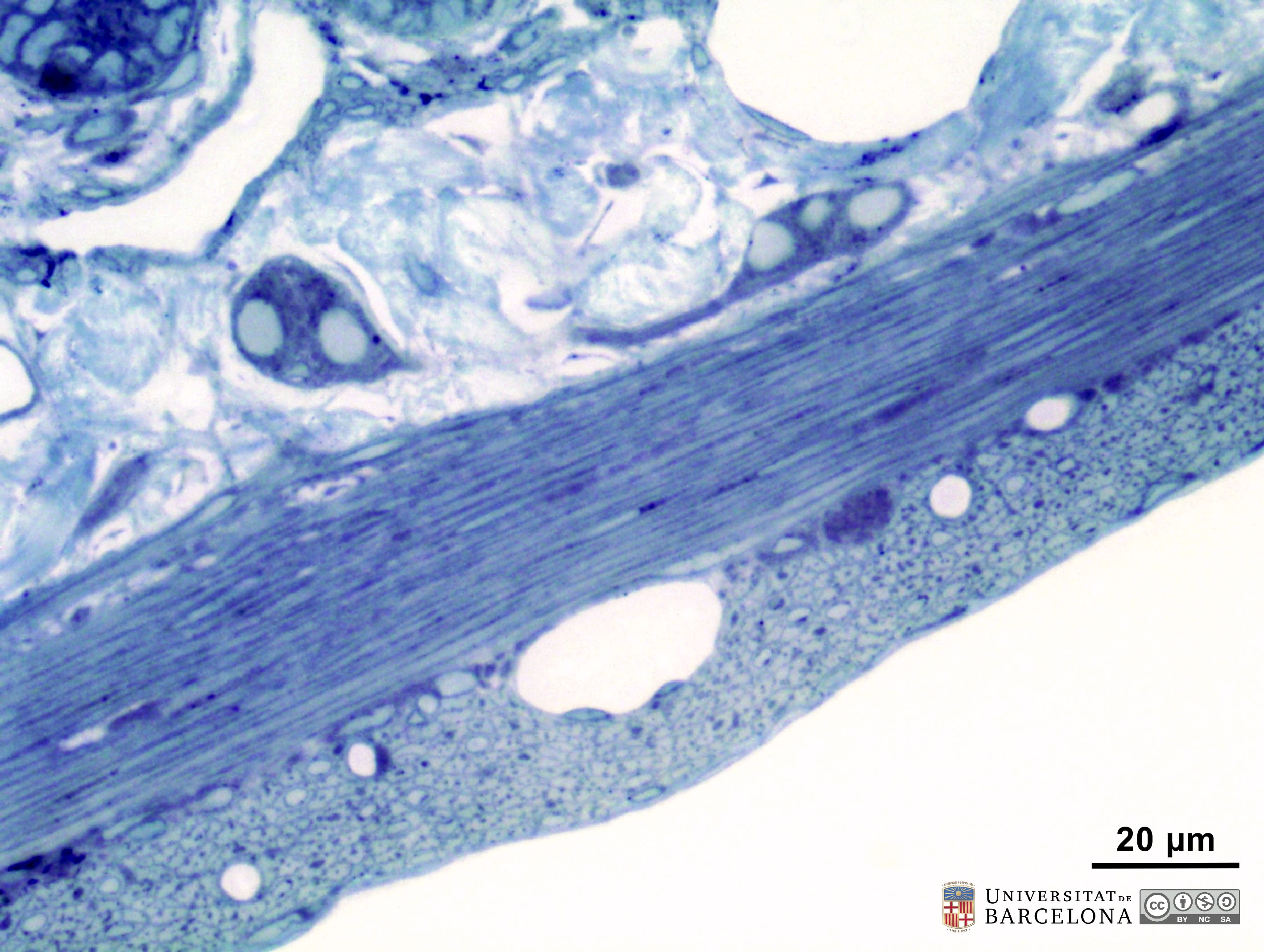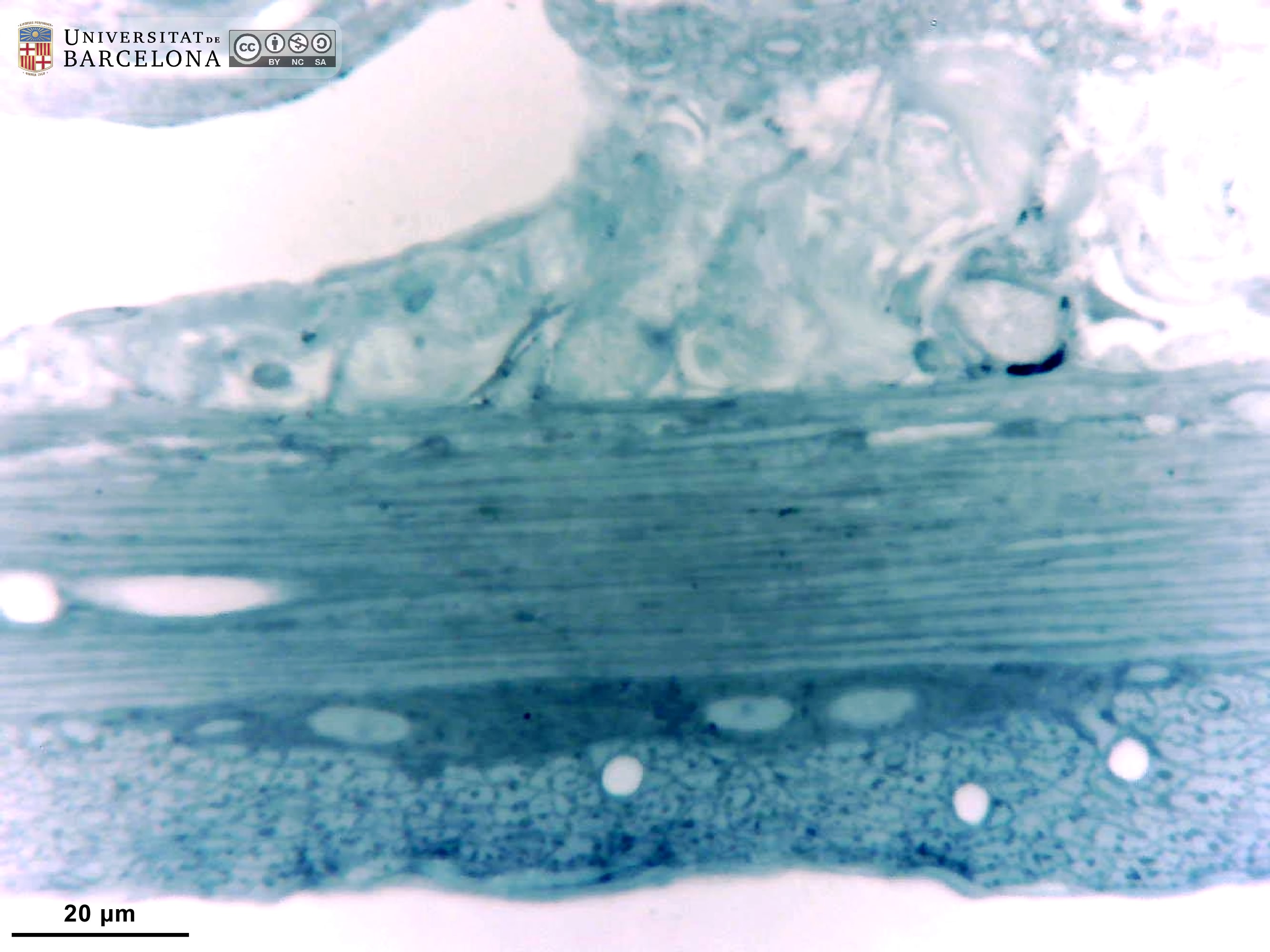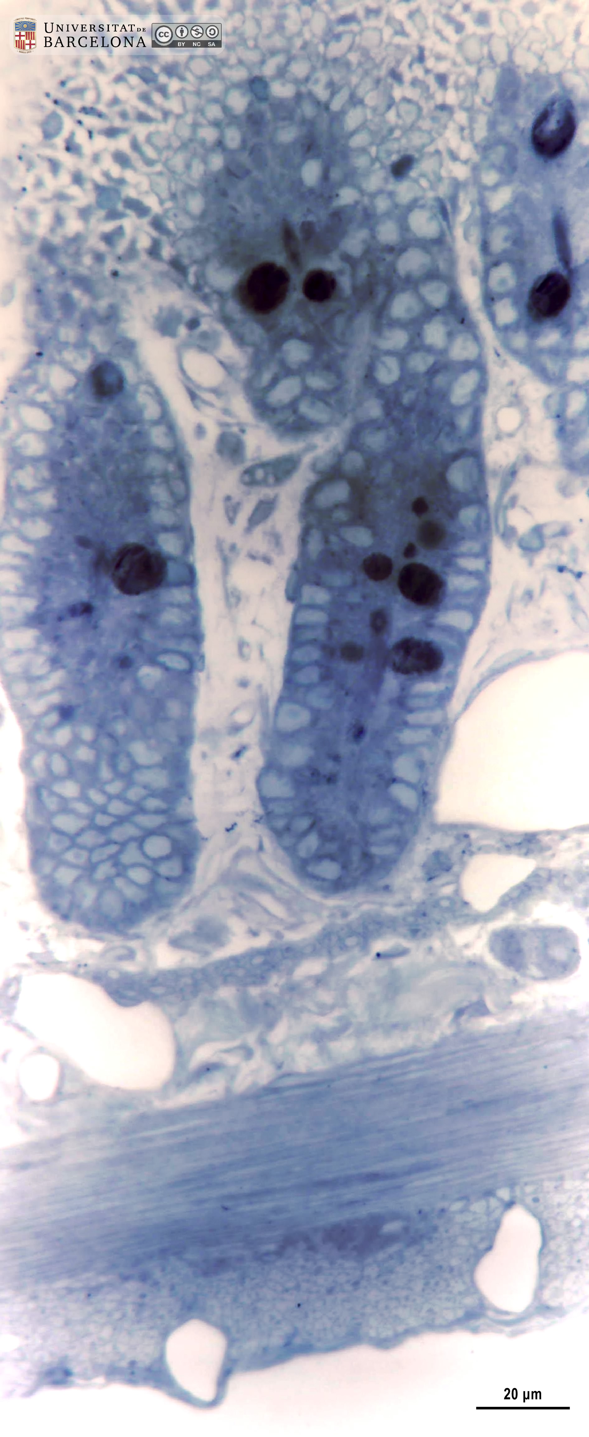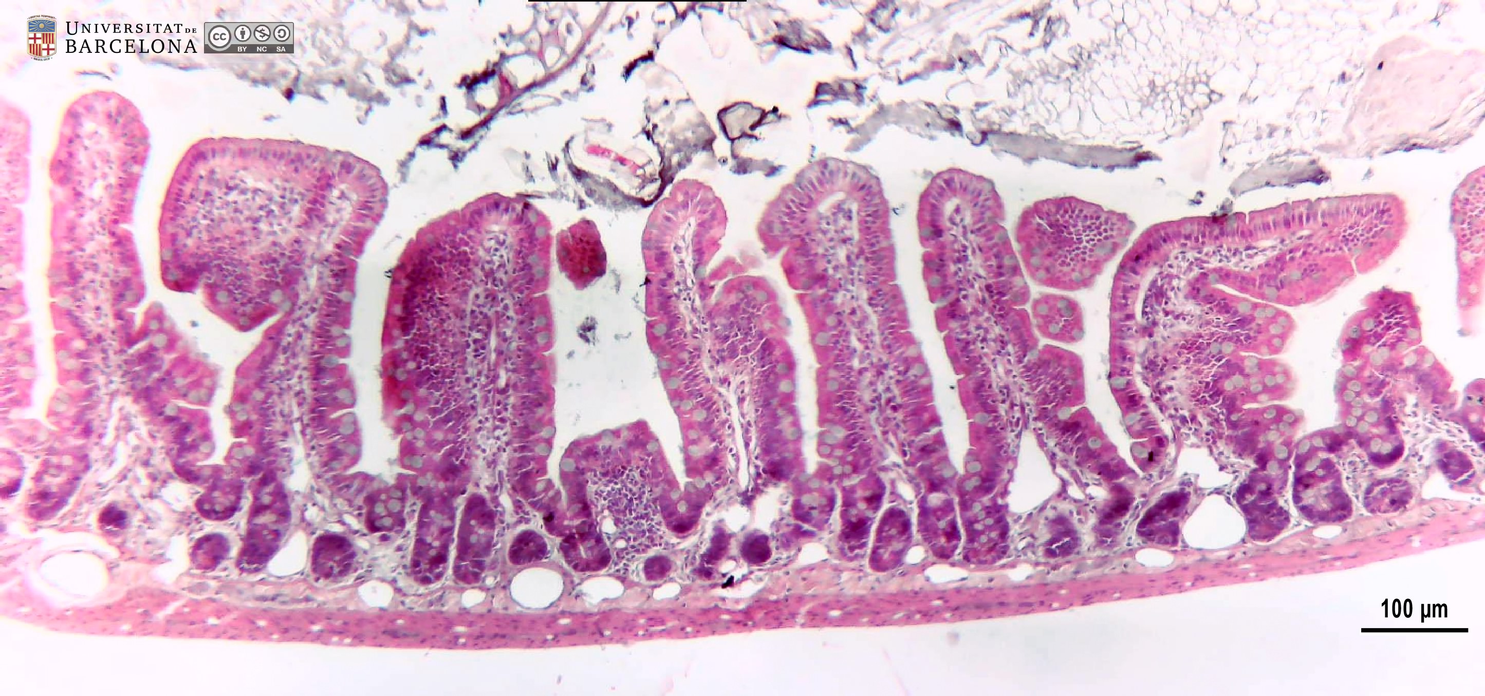 This collection complements the micrographs published by Dr Elena Sagristà i Mateo → https://hdl.handle.net/2445/60214 ← See also: → https://diposit.ub.edu/dspace/browse?type=author&value=Sagrist%C3%A0+i+Mateo%2C+Elena ← [CAT] Col·lecció de micrografies de l'organització del duodè de la rata i ratolí. S'inclouen imatges de la paret intestinal i detalls de cada capa: mucosa (que inclou l'epiteli, làmina propria, muscularis mucosæ), submucosa, muscularis externa i serosa. També es mostren detalls de l'epiteli en raspall, les cèl·lules caliciformes, les criptes, les glàndules de Brunner i els ganglis dels plexes submucós i mientèric. S'han utilitzat talls de parafina tenyits amb hematoxilina-eosina o el tricròmic de van Gieson, i talls semifins de 2 µm tenyits amb blau de toluïdina. Aquesta col·lecció complementa les micrografies publicades per la Dra. Elena Sagristà i Mateo → https://hdl.handle.net/2445/60214 ← See also: → https://diposit.ub.edu/dspace/browse?type=author&value=Sagrist%C3%A0+i+Mateo%2C+Elena ← |