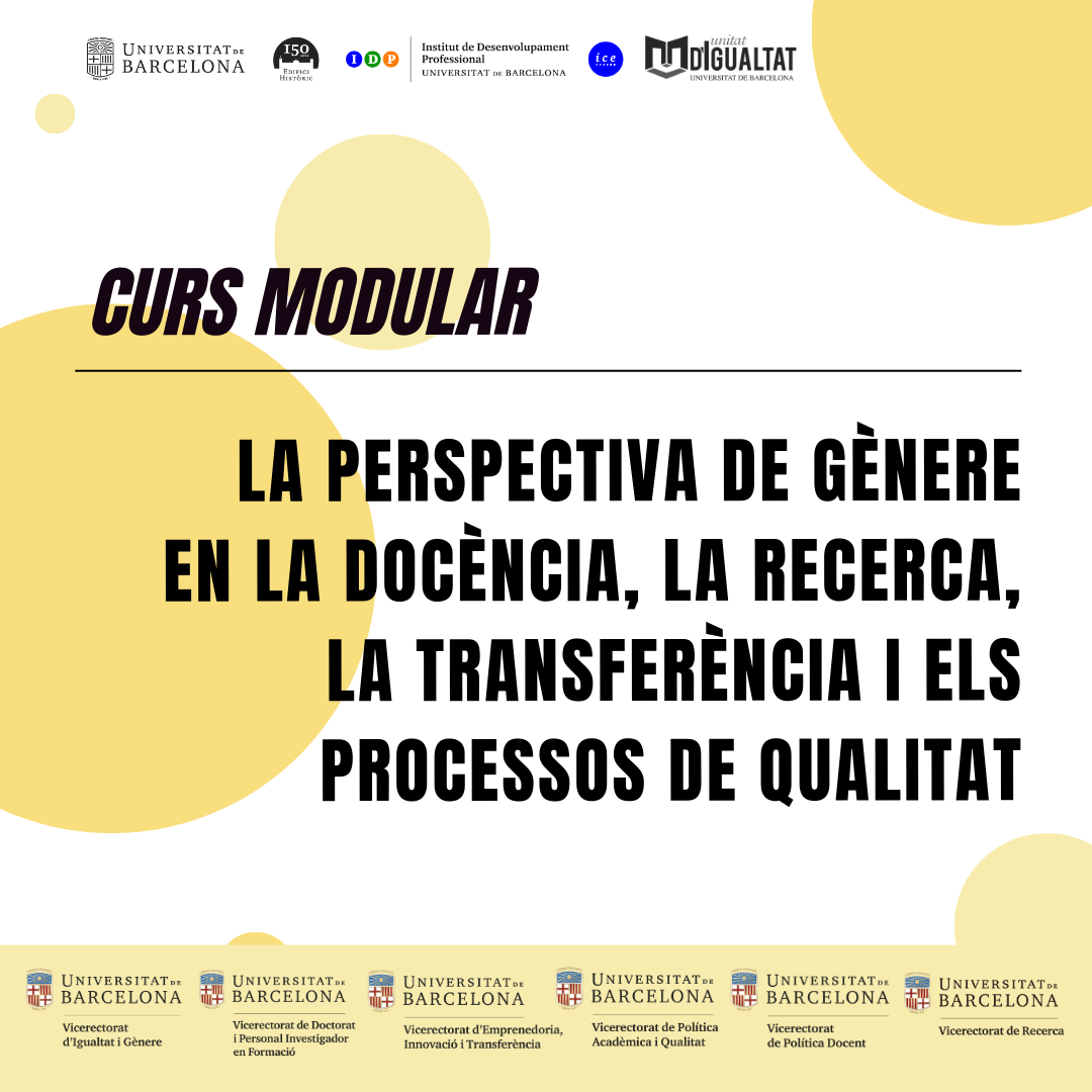 La perspectiva de gènere en la docència, la recerca, la transferència i els processos de qualitat. Curs Modular