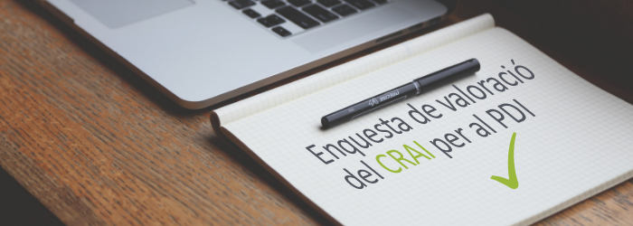 Per aquest motiu, s’ha elaborat una enquesta de valoració adreçada al professorat i al col·lectiu d’investigadors de la Universitat, que us demanem que contesteu per poder conèixer la vostra satisfacció i recollir la vostra opinió sobre aspectes relacionats amb el CRAI.