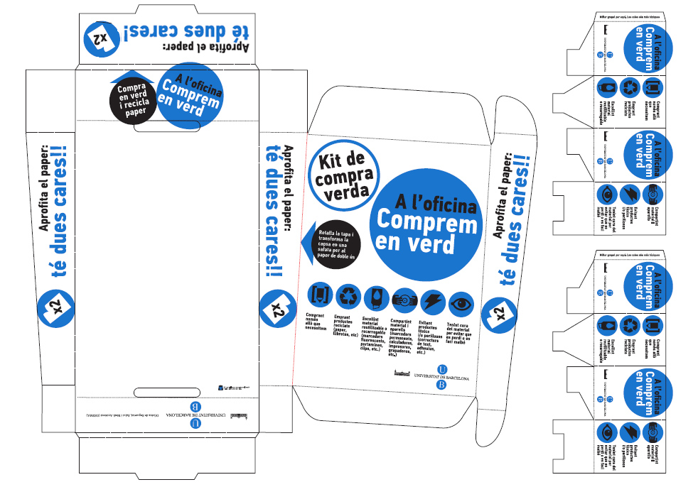 Kit de compra verda de la Universitat de Barcelona. Capsa-safata i portallapisos