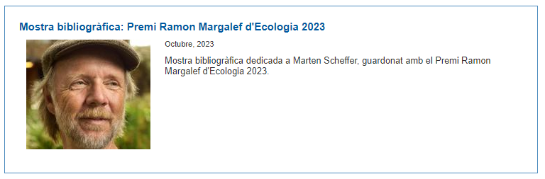 Universitat de Barcelona. CRAI. Mostra bibliogràfica: Premi Ramon Margalef d'Ecologia 2023. [consulta: 26 de febrer de 2026]. [Disponible a: https://hdl.handle.net/2445/203429]