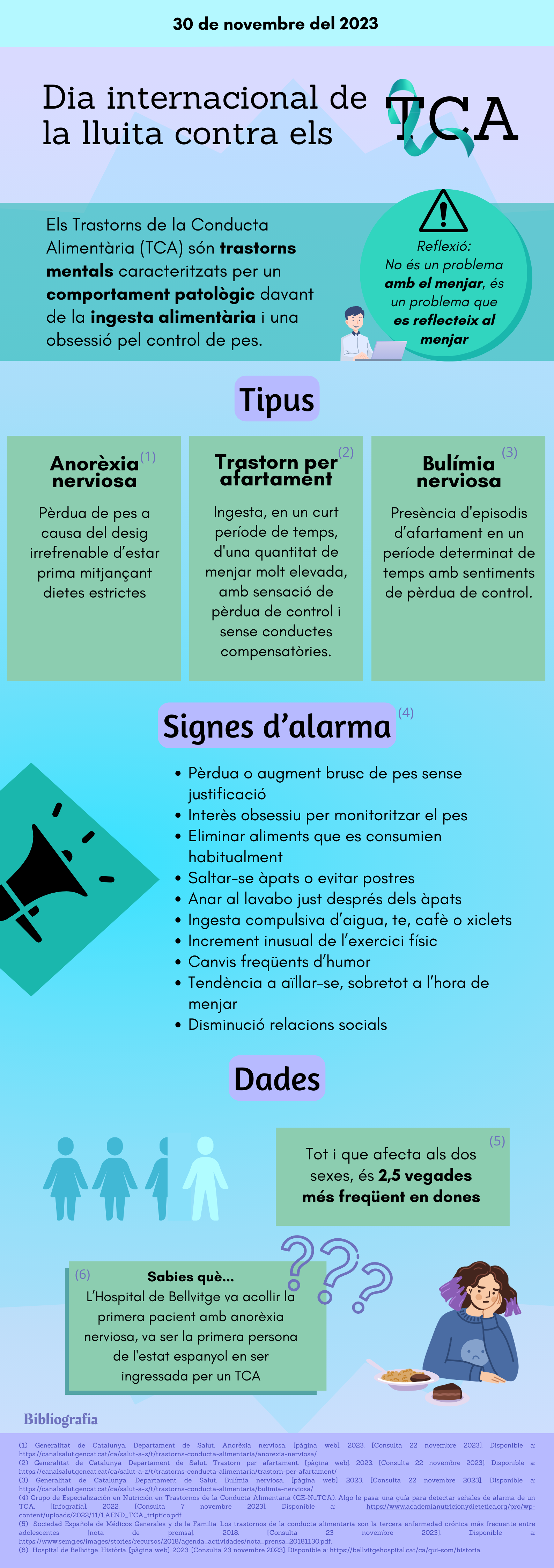 Amb motiu del Dia Internacional de la Lluita Contra els Trastorns de la Conducta Alimentària (30 de Novembre 2023), el CRAI Biblioteca del Campus Bellvitge han elaborat un pòster informatiu sobre aquests trastorns.