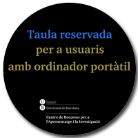 Universitat de Barcelona. CRAI. Cartell per a taules reservades per a usuaris amb portàtils (2013). [consulta: 25 de febrer de 2026]. [Disponible a: https://hdl.handle.net/2445/54403]