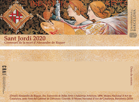 Des del CRAI de la UB volem que continuï la tradició de Sant Jordi, malgrat la crisi sanitària. Amb l’esperit de cooperació i de difusió de la cultura que ens caracteritza, i agraïnt la col·laboració del Museu Nacional d’Art de Catalunya (MNAC), volem compartir virtualment amb tota la comunitat universitària el punt de llibre commemoratiu que teníem preparat i que esperem poder repartir aviat des dels taulells de les biblioteques. Enguany homenatgem el polifacètic artista modernista Alexandre de Riquer en el centenari de la seva mort.