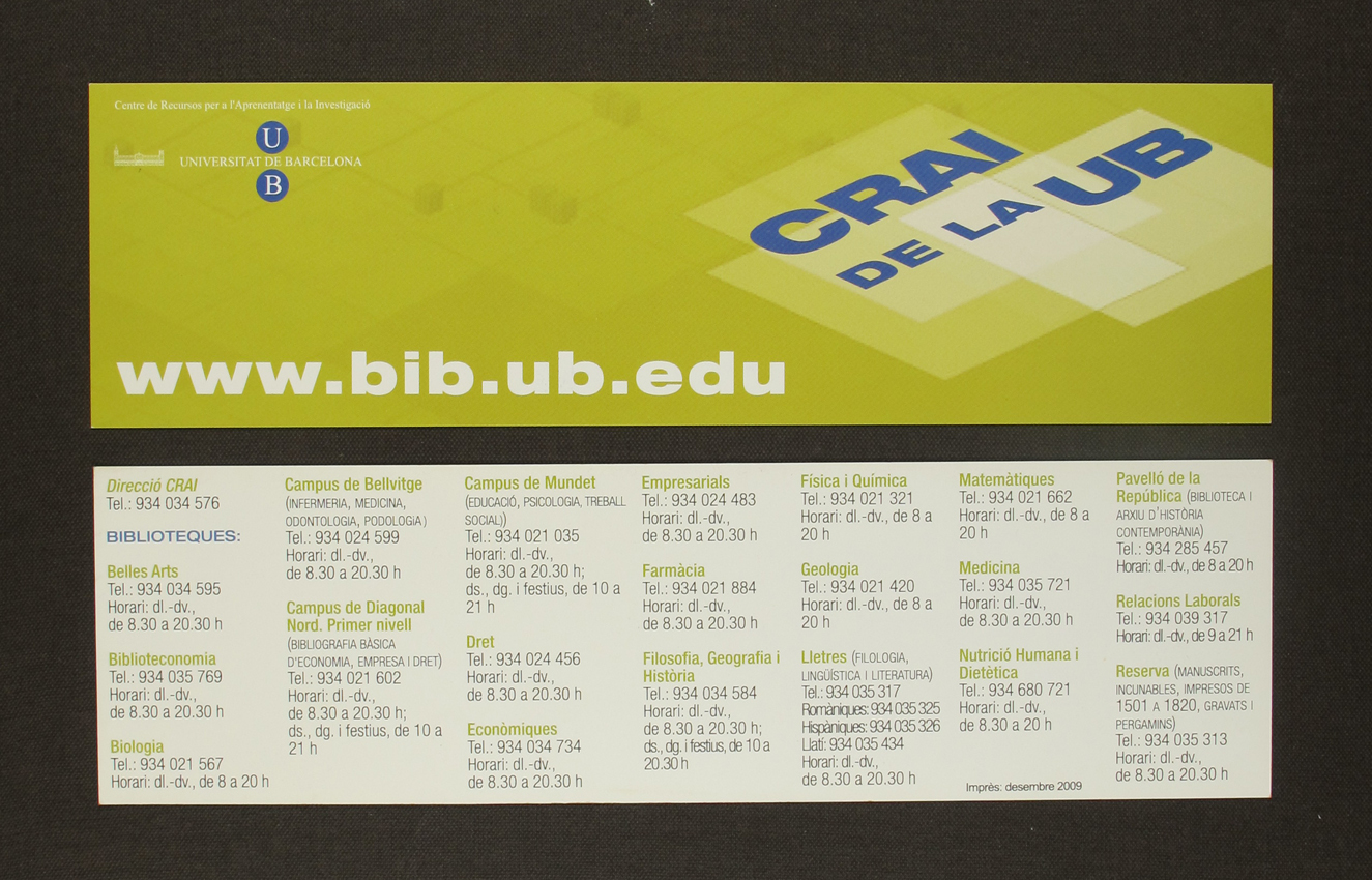 Punt de llibre CRAI Biblioteques 3a edició. (2009)