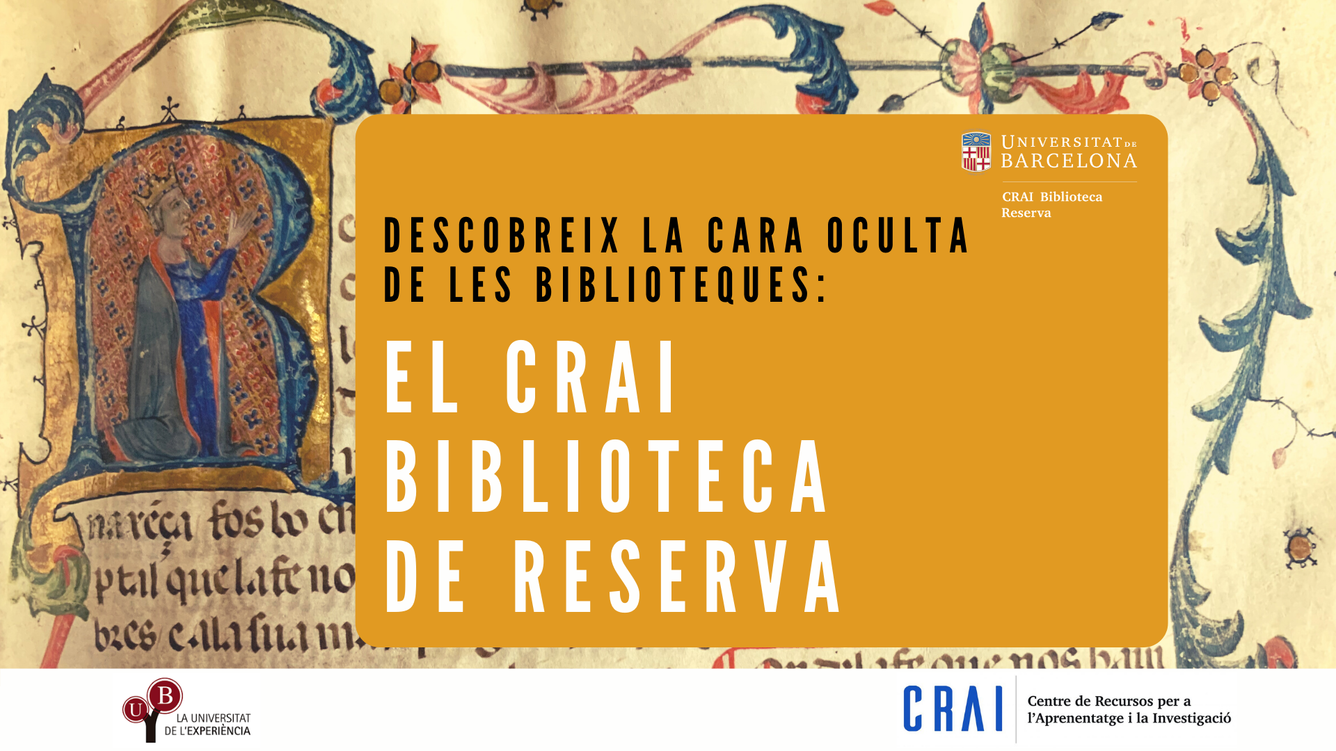 Universitat de Barcelona. CRAI Biblioteca de Reserva, MIQUEL OLIVER, Joan, CABALLER ALBAREDA, Gemma. Descobreix la cara oculta de les biblioteques: el CRAI Biblioteca de Reserva [vídeo]. [consulta: 26 de gener de 2026]. [Disponible a: https://hdl.handle.net/2445/173664]