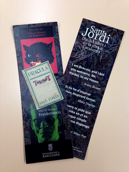 Objectius: Aprofitar la celebració del dia Internacional del Llibre (Sant Jordi a Catalunya) per promoure el CRAI de la Universitat de Barcelona. Descripció: Punt de llibre amb extractes de portades de novel·la fantàstica i de terror del fons del CRAI de la Universitat de Barcelona.
