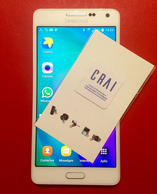 Objectius: Difondre el CRAI facilitant un adhesiu per enganxar a la part posterior del mòbil que serveix per a netejar la pantalla i inhibir les radiacions. Descripció: Adhesiu quadrat amb el logotip del CRAI.
