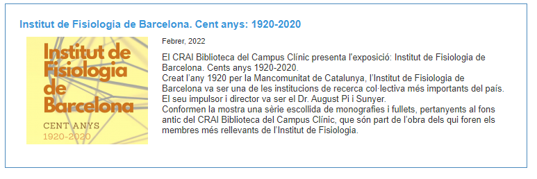 El CRAI Biblioteca del Campus Clínic presenta l'exposició: Institut de Fisiologia de Barcelona. Cents anys 1920-2020.